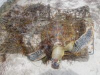Most people consider these traps to pose a low impact on marine animals. Unfortunately, this is not the case at all. Turtles may still become entangled in the raised net section of these traps. But don’t throw it out just yet, you can reconfigure these traps and them more eco-friendly. Firstly, remove the rope at the pointy end (top) of the net. Next, tie your float onto the metal hoop with 3 equally spaced lengths of rope. This will convert it to a “lift net” trap, which allows turtles to swim around your gear, without any risk of getting tangled in it.